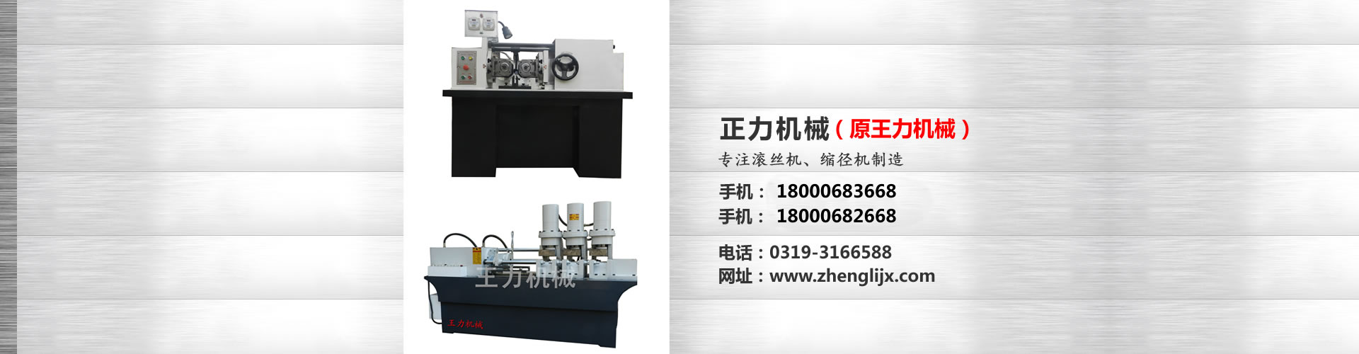 邢臺正力機械制造有限公司是國內高端平價滾絲機專業化制造企業。 本公司是集研制、開發 、生產與銷售為一體的大型機械廠家,現主要產品有:滾絲機,螺紋機床,縮經機,拔料機,冷軋壓圓機,雙組拉絲機等各種機械。地處燕趙大地南部邢臺市,是省級重合同、守信用、產品質量穩定型企業,河北省消費者協會信的過產品,產品暢銷全國各地,深受用戶的好評。          現擁有Z28-40、80、150、200、280、63型系列在五金建筑、汽摩配件、交通電力、標準件制作等高精度產品加工行業中,對高強度螺紋、網紋、花鍵、直斜紋、梯形螺紋、特殊軸類的滾軋加工有很強的優越性,以高效、精密、快捷的工作原理深受廣大用戶的信賴。         專用的液壓縮徑機WL-25、36、48、60、型操作簡便,適用范圍廣,生產效率高,使金屬擠壓快速成型,節約了原材料,提高了金屬密度和抗拉強度         本公司長期供應各種滾絲輪、縮徑機模具等各種配件。          產品暢銷河北,河南,山西,山東、遼寧、黑龍江、吉林、北京、天 津等省市自治區。我們不斷引進國內外先進技術,不斷優化產品結構,精心鑄造產品質量。王力品牌系列滾絲機、縮徑機、絲杠機是根據國內的先進機型加以改進,具有結構設計科學,結構合理、能耗低、精度高、 使用壽命長等優點。         我們正被更多的朋友接受,認可,因為我們用真誠……